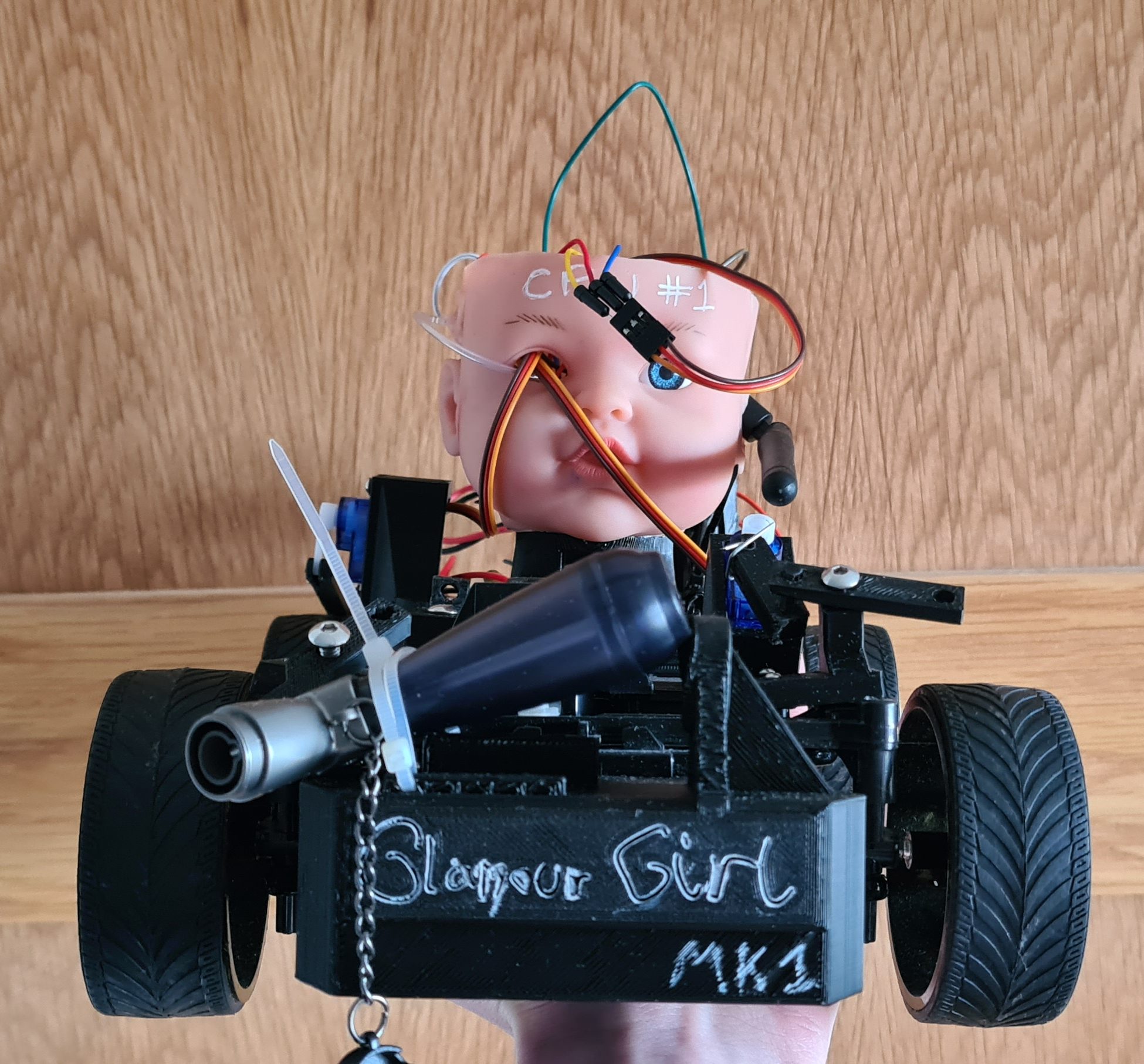 As you can see in the images to the right, MK I was a fast and furious prototype. In the end though, she was neither fast nor furious. The additional weight I had added to the RC Car proved too great for the speedy trickster, and it struggled to get moving at all. Additionally, the plastic Servo motors I had used for the Flamethrower feature were not strong enough to reliably activate the deodorant can and Jet lighter.